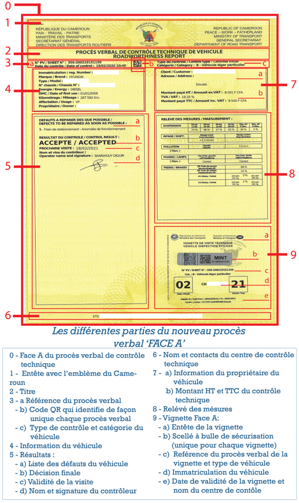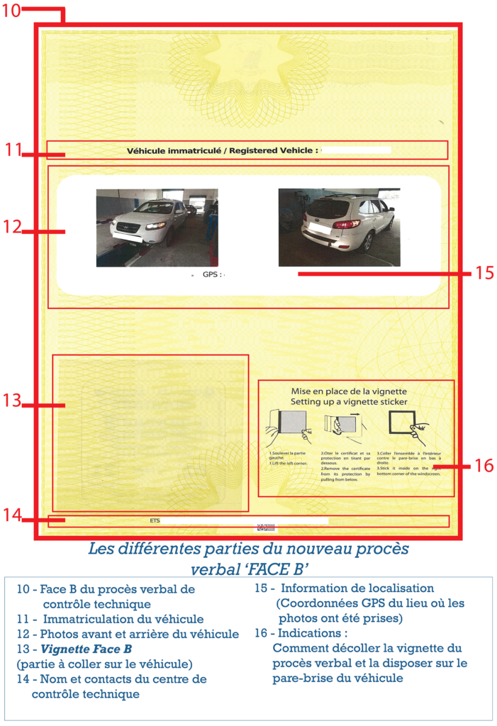 Ci-dessous la description du nouveau procès verbal de contrôle technique automobile.